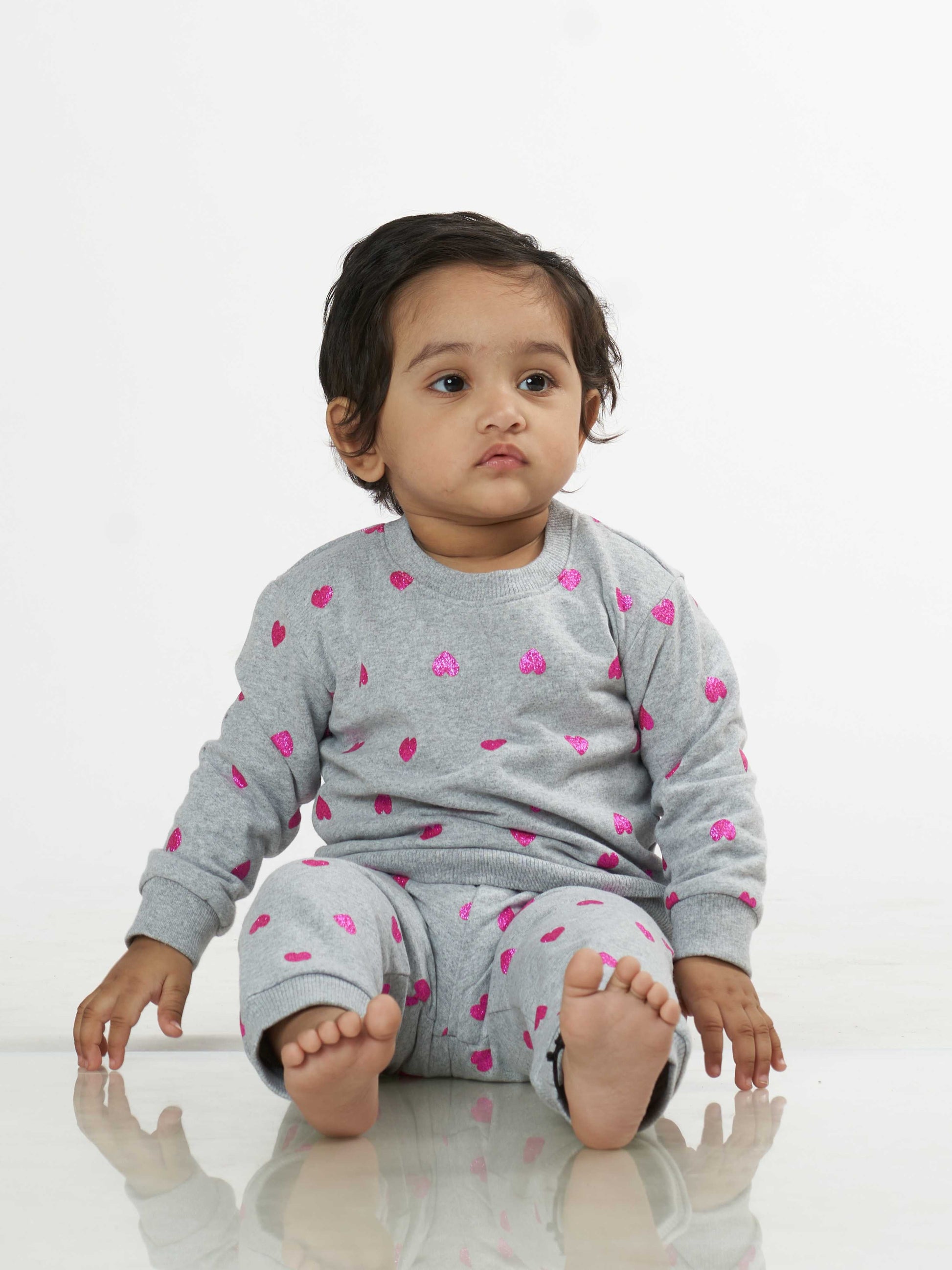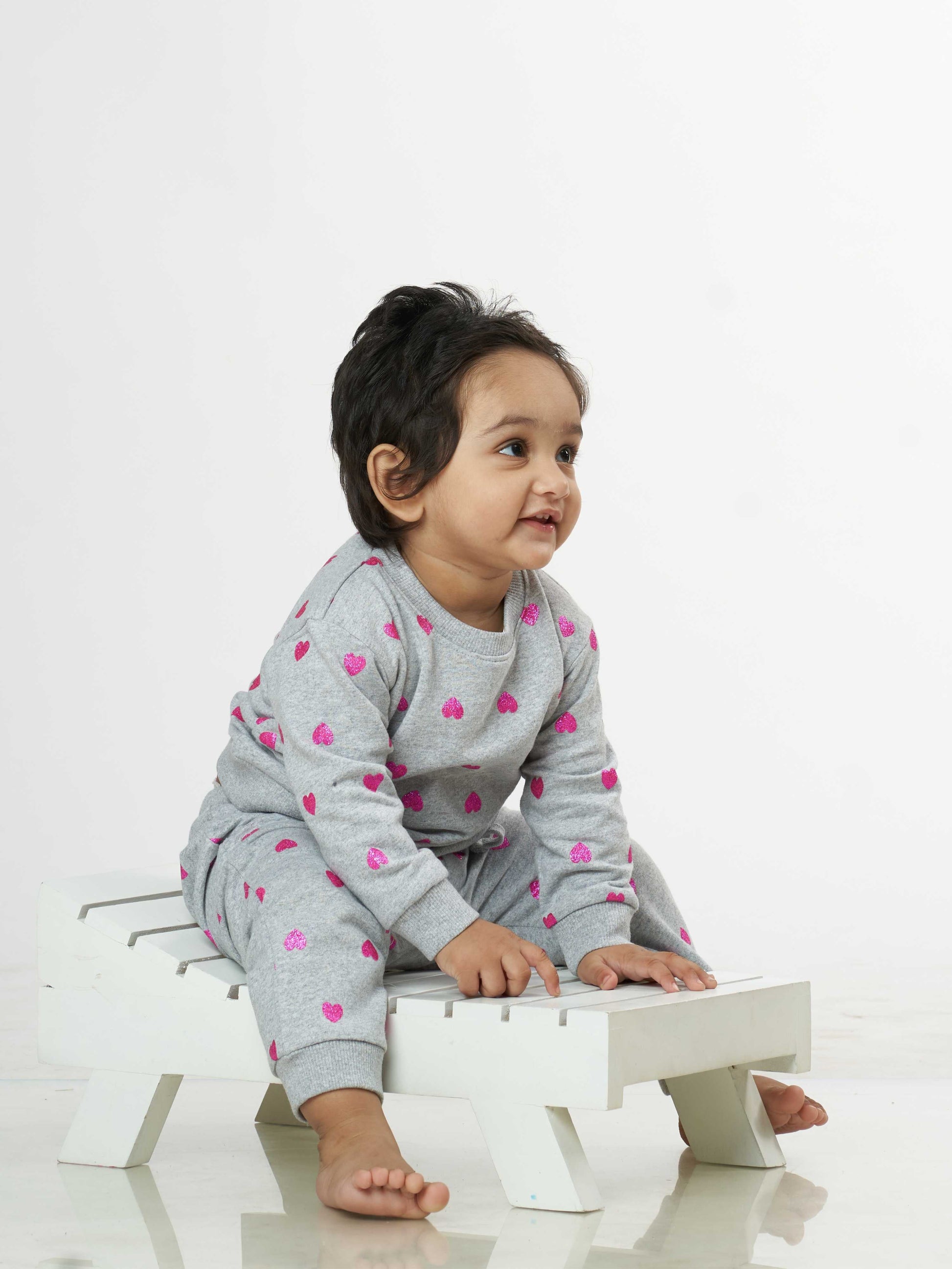 Little Hearts Winter Sweatshirt Babies Pyjama Set